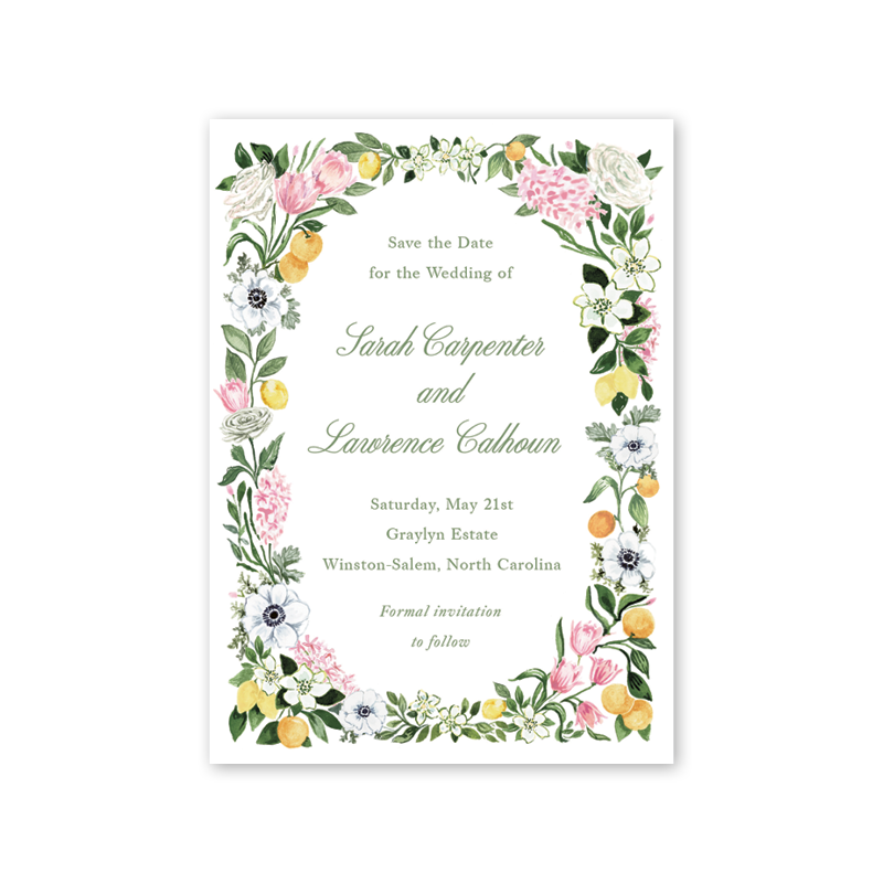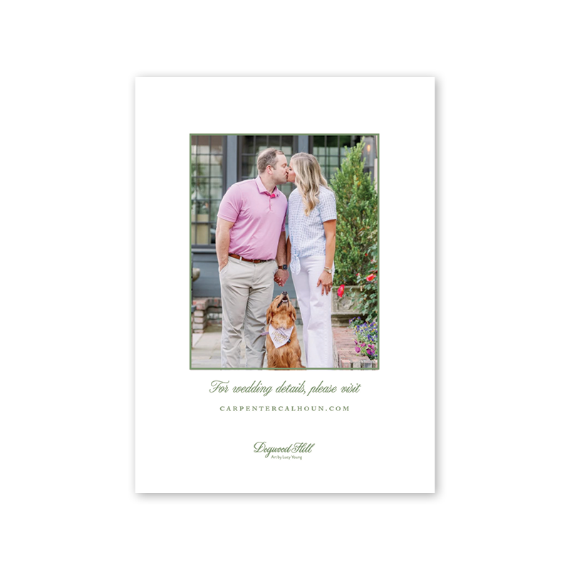Select your order quantity from the dropdown menu below and check your total. Enter the text for your Save the Date in the “Note” box below. Click Add to Cart. Your wording does not have to match the sample product wording and can be customized for your Save the Date. You will receive a proof notification via email and text message within 3 to 5 business days.If your Save the Date includes a photo, please email a high resolution image along with your order number to weddings@dogwood-hill.com.