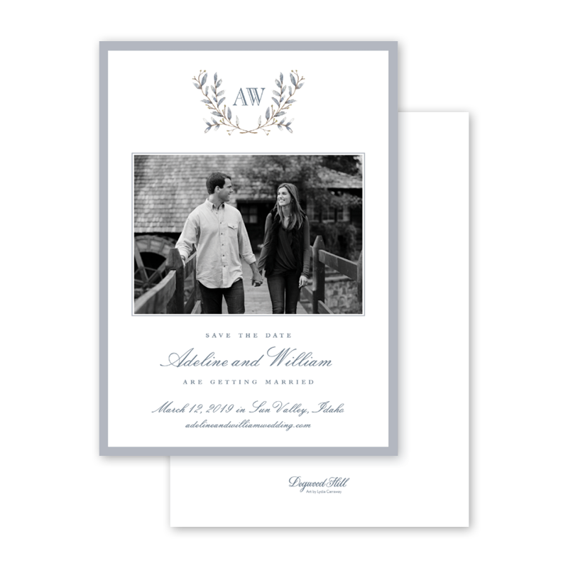 Select your order quantity from the dropdown menu below and check your total. Enter the text for your Save the Date in the “Note” box below. Click Add to Cart. Your wording does not have to match the sample product wording and can be customized for your Save the Date. You will receive a proof notification via email and text message within 3 to 5 business days.If your Save the Date includes a photo, please email a high resolution image along with your order number to weddings@dogwood-hill.com.