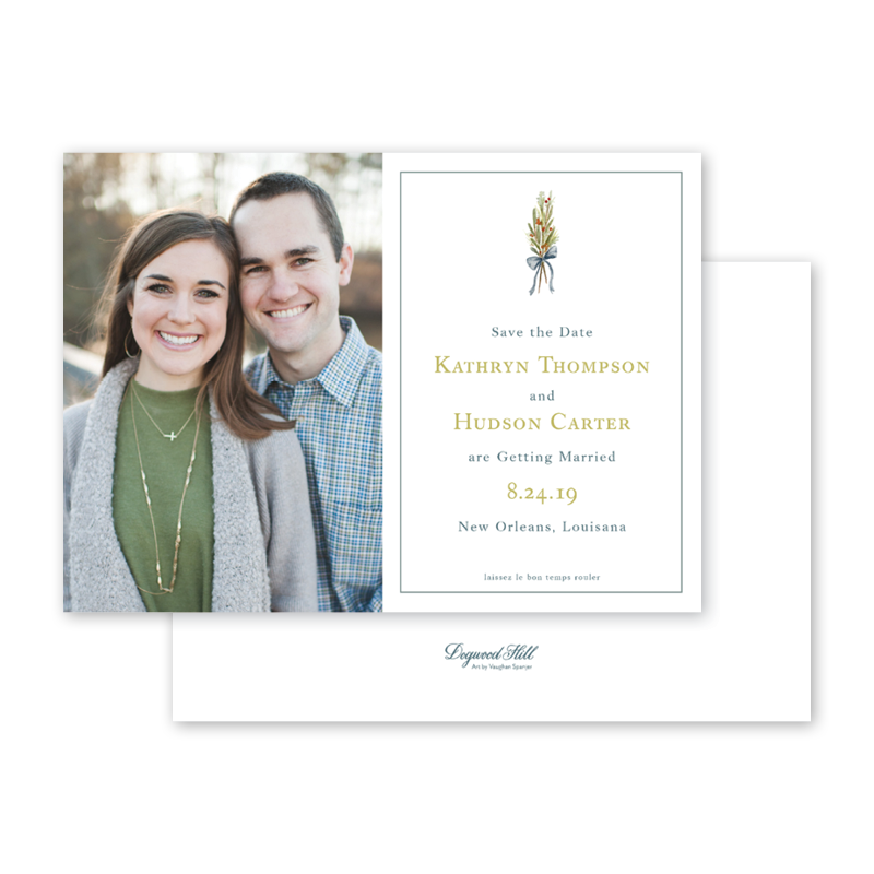 Select your order quantity from the dropdown menu below and check your total. Enter the text for your Save the Date in the “Note” box below. Click Add to Cart. Your wording does not have to match the sample product wording and can be customized for your Save the Date. You will receive a proof notification via email and text message within 3 to 5 business days.If your Save the Date includes a photo, please email a high resolution image along with your order number to weddings@dogwood-hill.com.