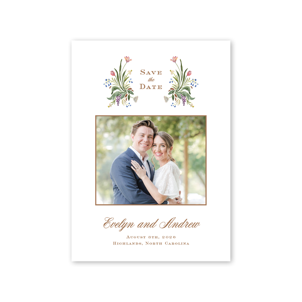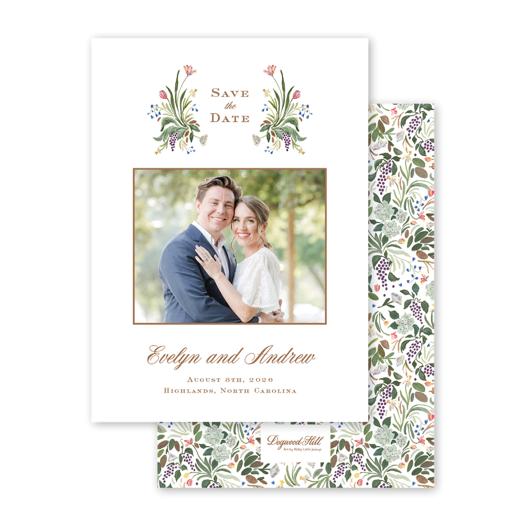 Select your order quantity from the dropdown menu below and check your total. Enter the text for your Save the Date in the “Note” box below. Click Add to Cart. Your wording does not have to match the sample product wording and can be customized for your Save the Date. You will receive a proof notification via email and text message within 3 to 5 business days.If your Save the Date includes a photo, please email a high resolution image along with your order number to weddings@dogwood-hill.com.