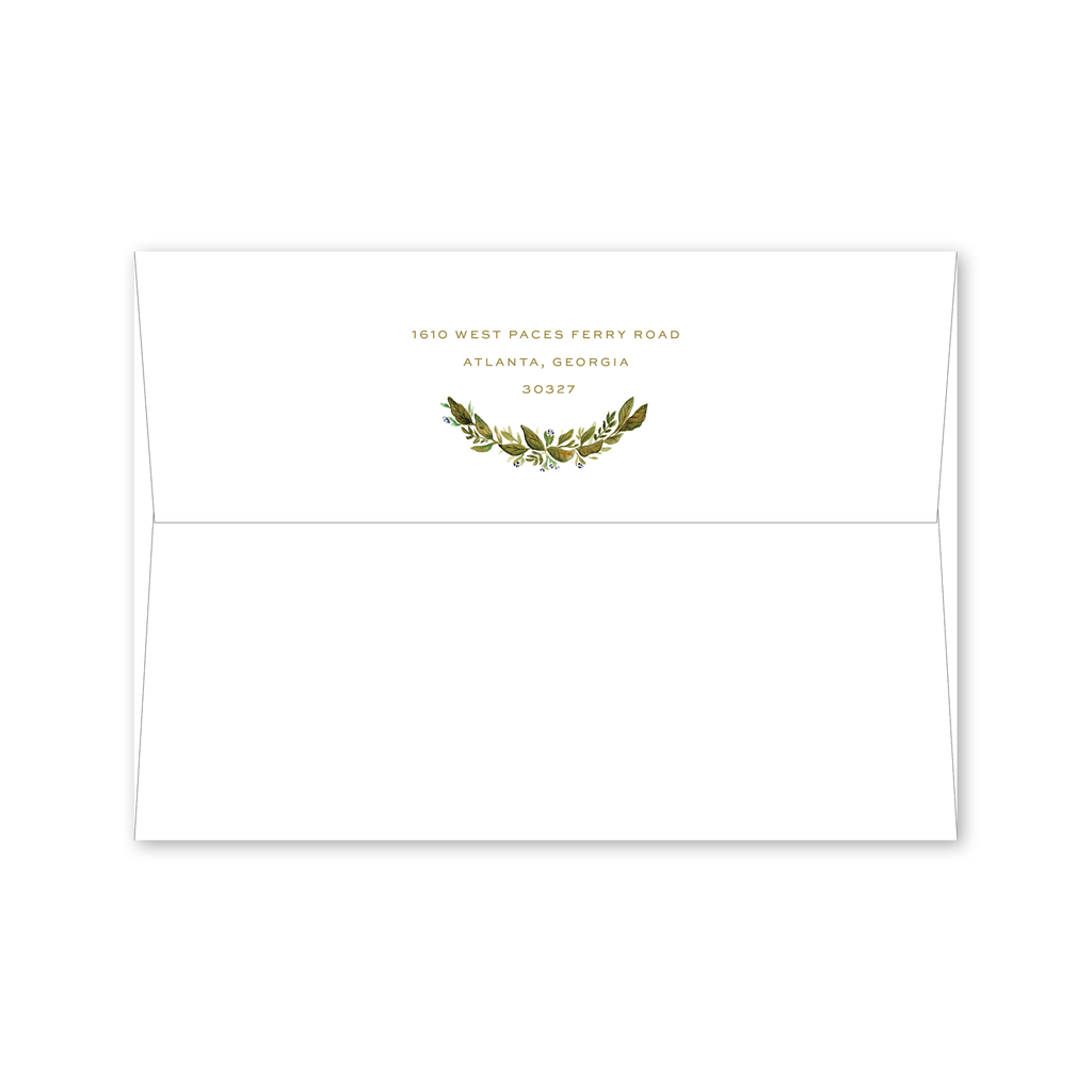 Each invitation comes with a blank inner and outer envelope and return address printing on the outer envelope flap. Envelope liner and recipient address printing for each envelope may be purchased for an additional cost on the main collection page.