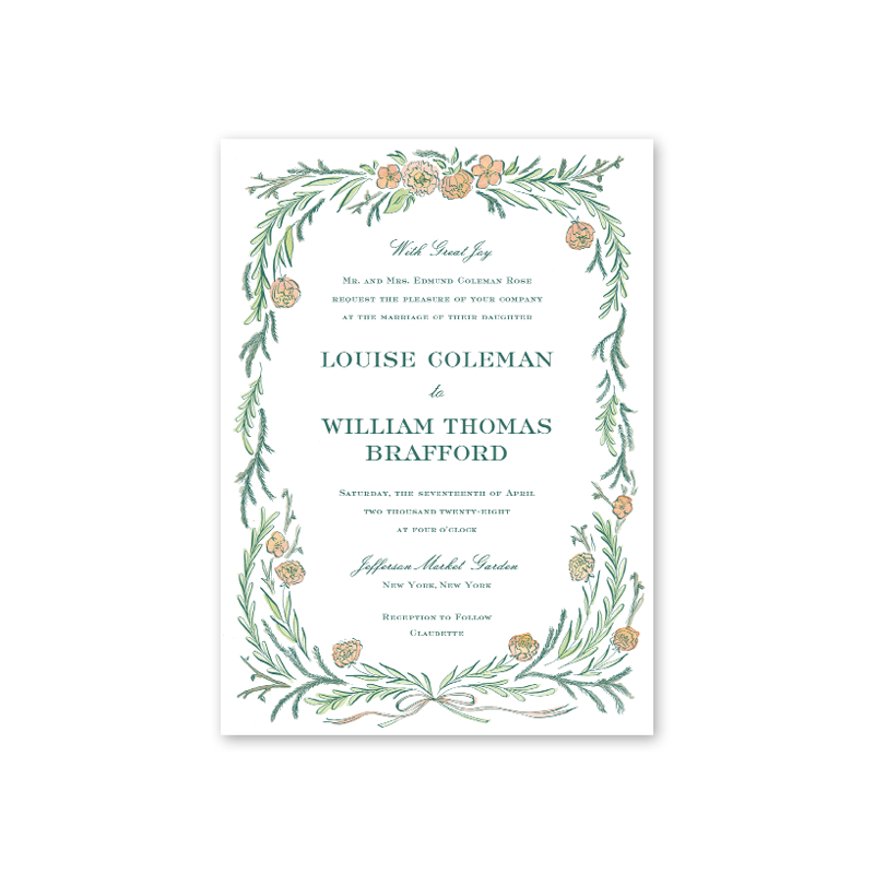 Each invitation comes with a blank inner and outer envelope and return address printing on the outer envelope flap. Envelope liner and recipient address printing for each envelope may be purchased for an additional cost on the main collection page.