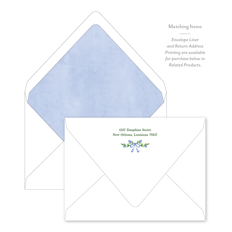 Select your order quantity from the dropbox menu below and check your total. Enter the personalization text for your notecard in the “Note” box below. Click Add to Cart. You will receive a proof notification via email and text message within 3 to 5 business days.Each card comes with one free BLANK Eggshell White envelope.
