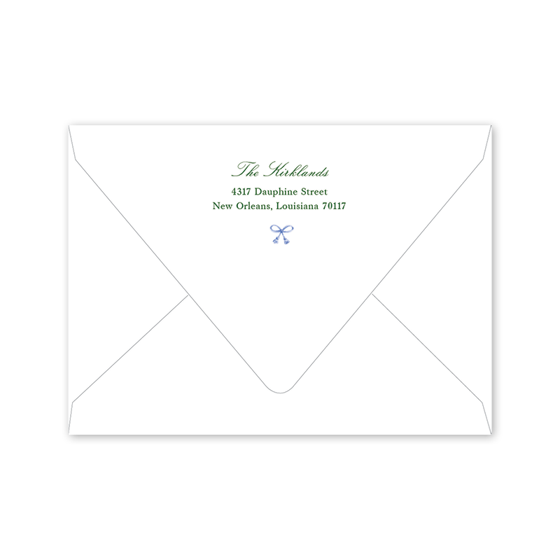 Enter your order quantity and check your total. Please enter your address EXACTLY like you want it printed on your envelope in the "Note" box below. Click Add to Cart. You will not receive a proof during the holidays (September 15 – December 31), unless your accompanying card requires a proof. If you do not include your address in the "Note" box or email it to Customer Service within 24 hours of placing your order, we will use your shipping address as the printed return address on your envelope.