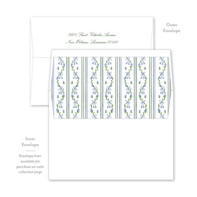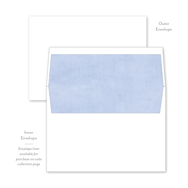 Each invitation comes with an inner and outer envelope and return address printing on the outer envelope flap. Envelope liner may be purchased for an additional cost on the main collection page.