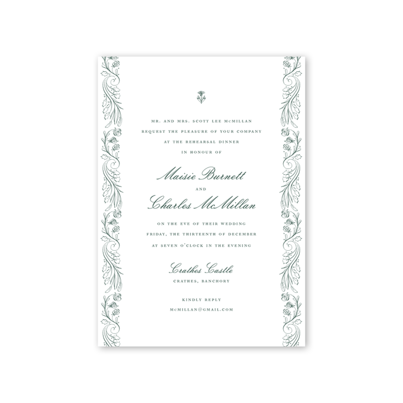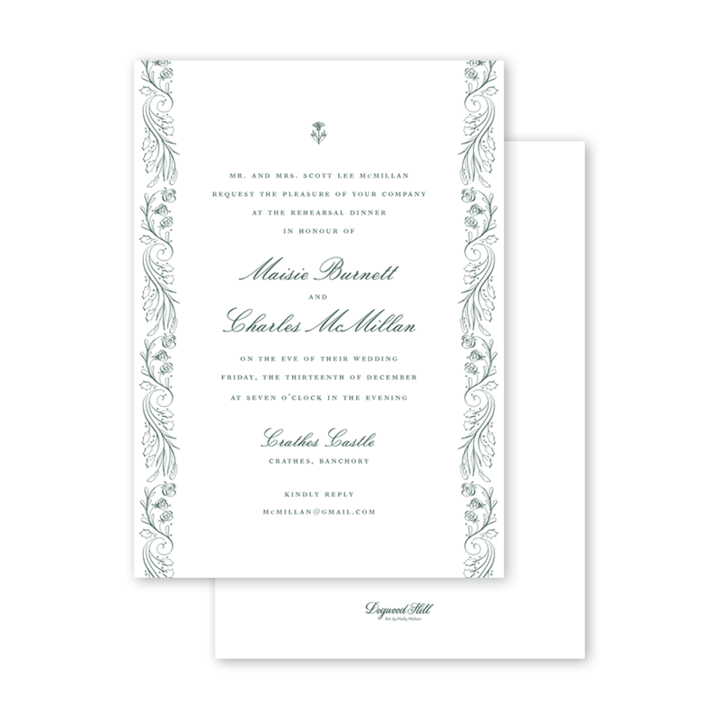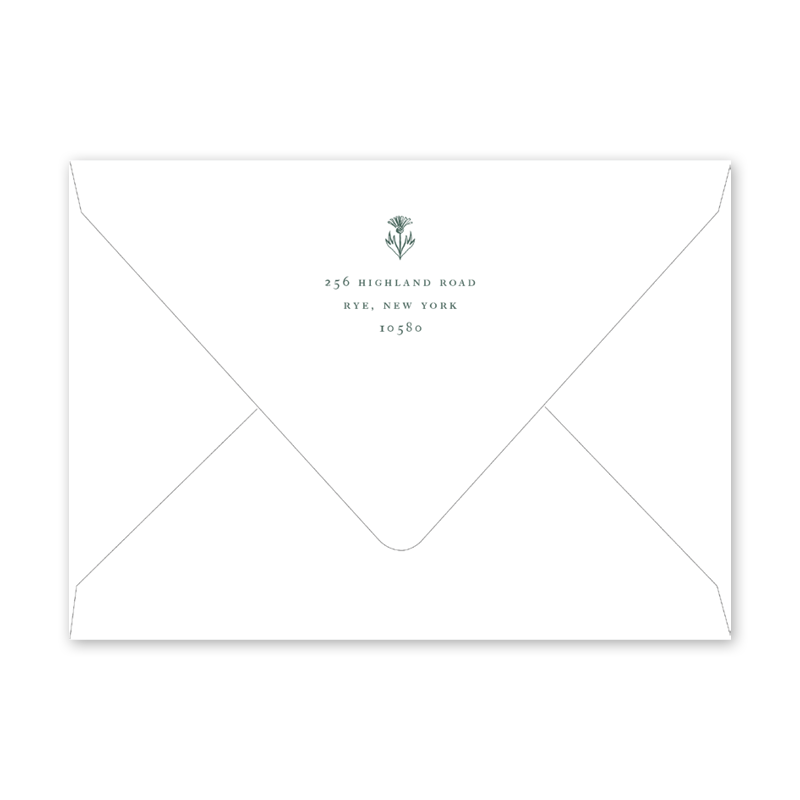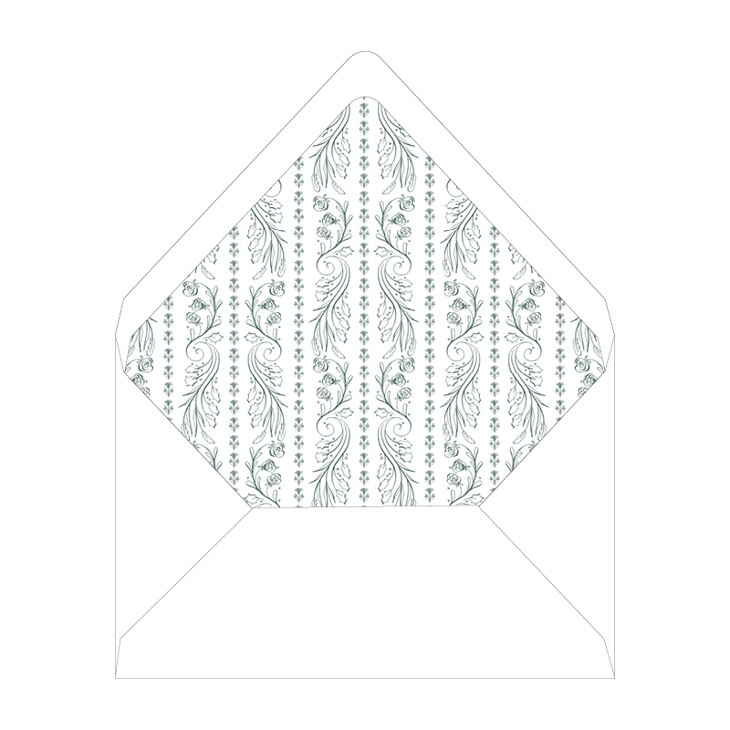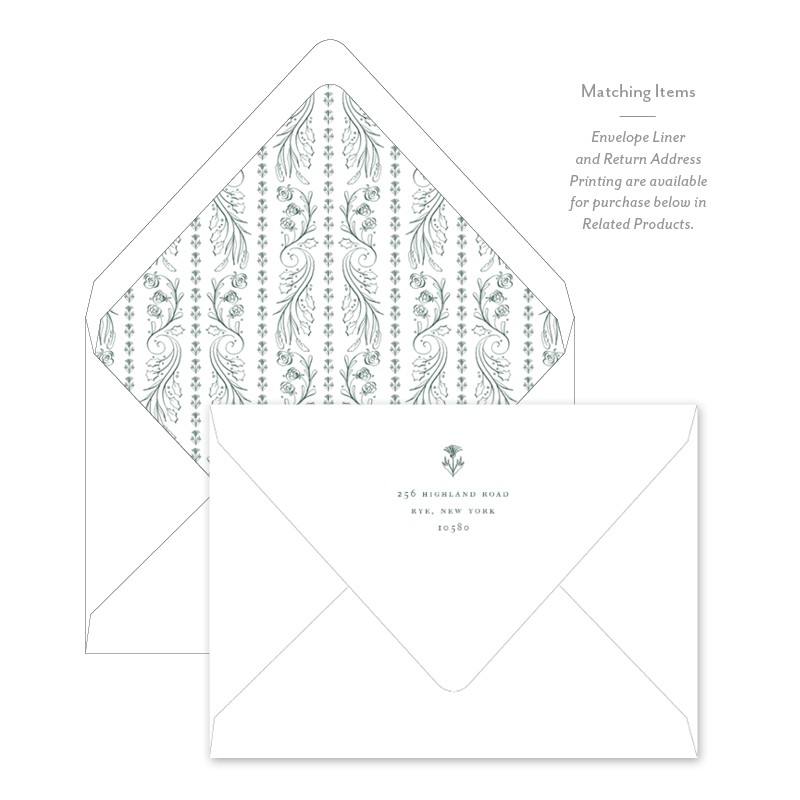 Each invitation comes with an inner and outer envelope and return address printing on the outer envelope flap. Envelope liner may be purchased for an additional cost on the main collection page.