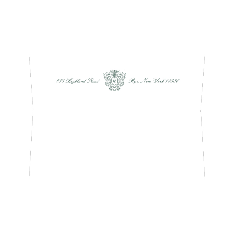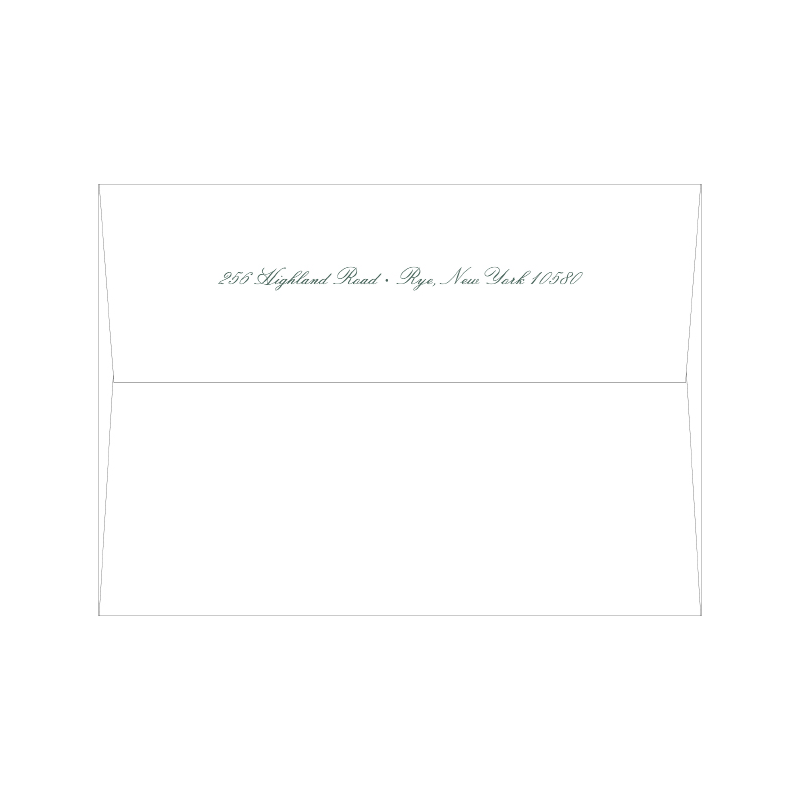 Each invitation comes with a blank inner and outer envelope and return address printing on the outer envelope flap. Envelope liner and recipient address printing for each envelope may be purchased for an additional cost on the main collection page.
