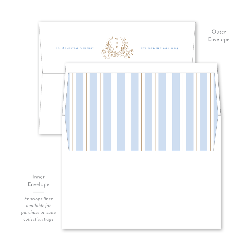 Each invitation comes with an inner and outer envelope and return address printing on the outer envelope flap. Envelope liner may be purchased for an additional cost on the main collection page.