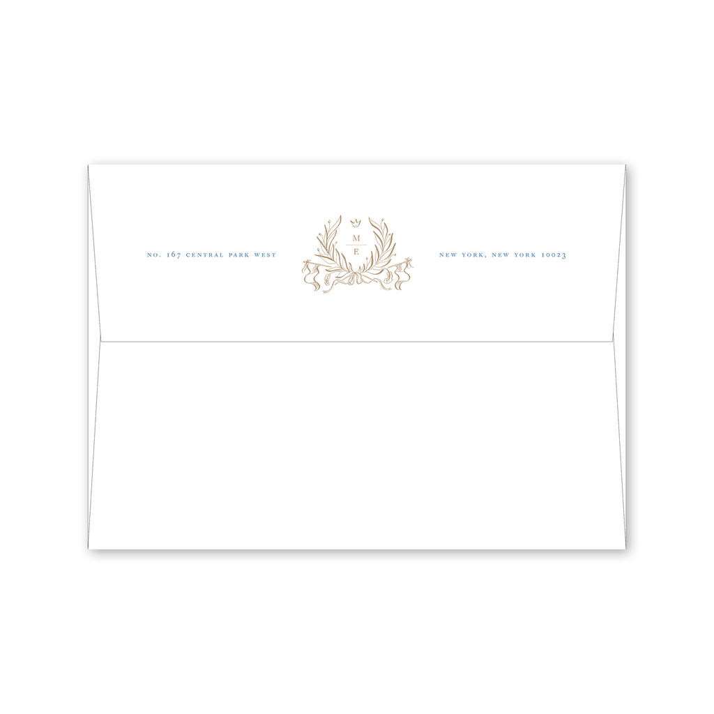 Each invitation comes with a blank inner and outer envelope and return address printing on the outer envelope flap. Envelope liner and recipient address printing for each envelope may be purchased for an additional cost on the main collection page.