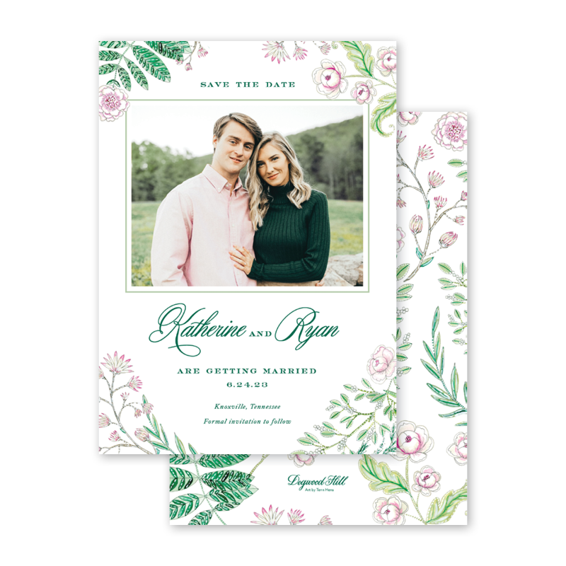 Select your order quantity from the dropdown menu below and check your total. Enter the text for your Save the Date in the “Note” box below. Click Add to Cart. Your wording does not have to match the sample product wording and can be customized for your Save the Date. You will receive a proof notification via email and text message within 3 to 5 business days.If your Save the Date includes a photo, please email a high resolution image along with your order number to weddings@dogwood-hill.com.