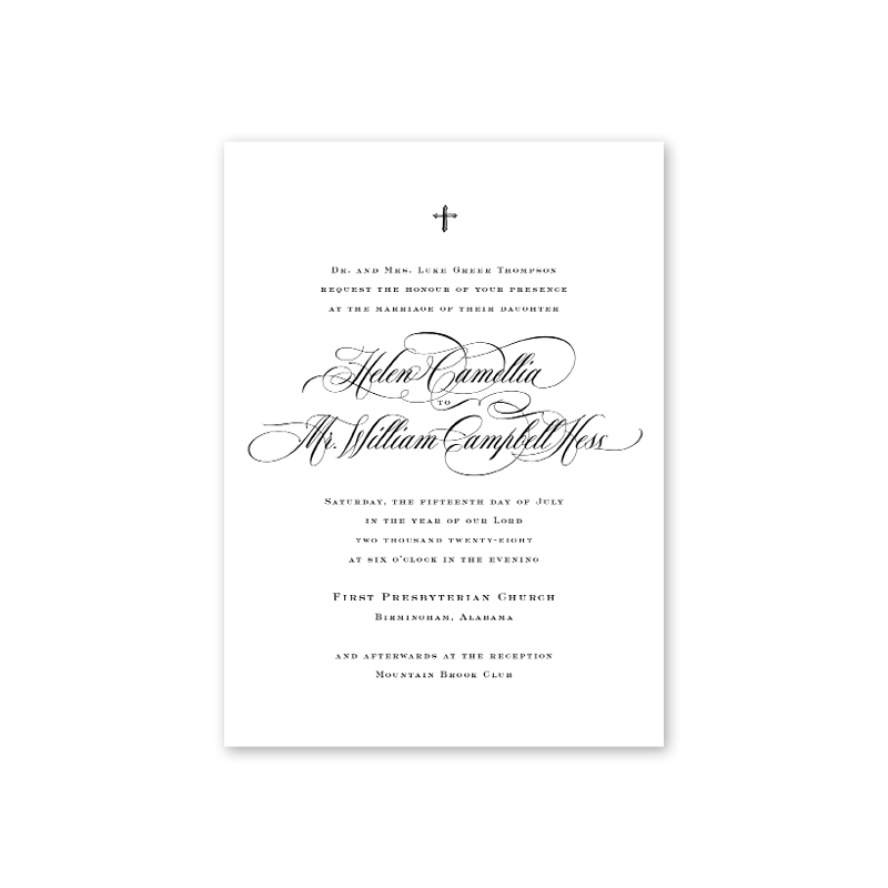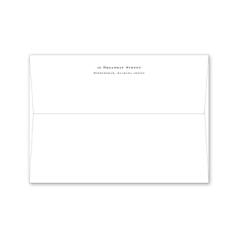 Each invitation comes with a blank inner and outer envelope and return address printing on the outer envelope flap. Envelope liner and recipient address printing for each envelope may be purchased for an additional cost on the main collection page.