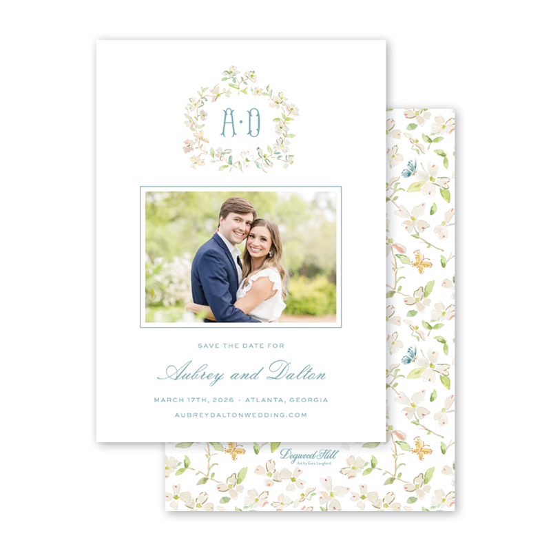 If your Save the Date includes a photo, please email a high resolution image along with your order number to weddings@dogwood-hill.com.