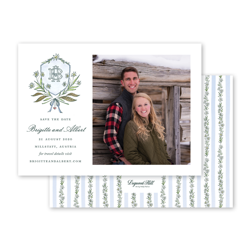 Select your order quantity from the dropdown menu below and check your total. Enter the text for your Save the Date in the “Note” box below. Click Add to Cart. Your wording does not have to match the sample product wording and can be customized for your Save the Date. You will receive a proof notification via email and text message within 3 to 5 business days.If your Save the Date includes a photo, please email a high resolution image along with your order number to weddings@dogwood-hill.com.