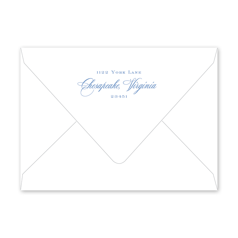 Enter your order quantity and check your total. Please enter your address EXACTLY like you want it printed on your envelope in the "Note" box below. Click Add to Cart. You will not receive a proof during the holidays (September 15 – December 31), unless your accompanying card requires a proof. If you do not include your address in the "Note" box or email it to Customer Service within 24 hours of placing your order, we will use your shipping address as the printed return address on your envelope.