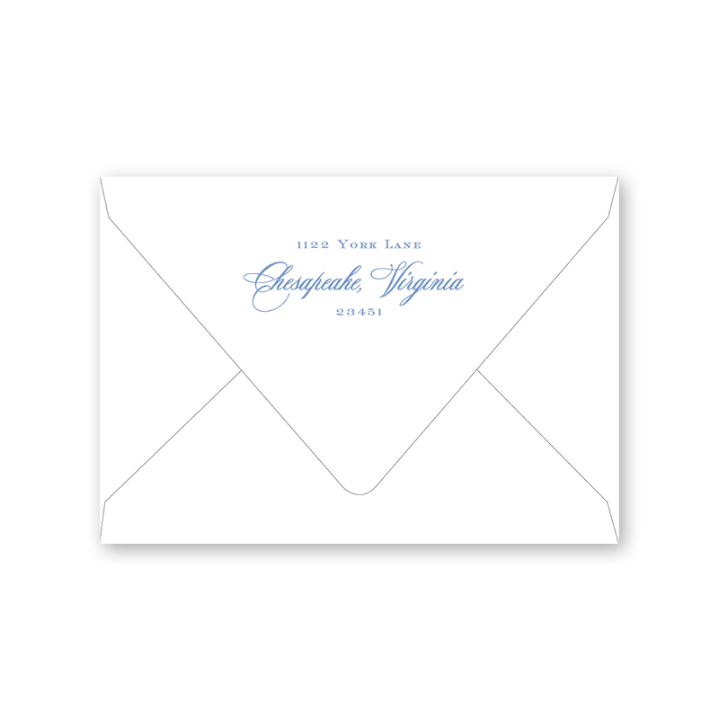Enter your order quantity and check your total. Please enter your address EXACTLY like you want it printed on your envelope in the "Note" box below. Click Add to Cart. You will not receive a proof during the holidays (September 15 – December 31), unless your accompanying card requires a proof. If you do not include your address in the "Note" box or email it to Customer Service within 24 hours of placing your order, we will use your shipping address as the printed return address on your envelope.
