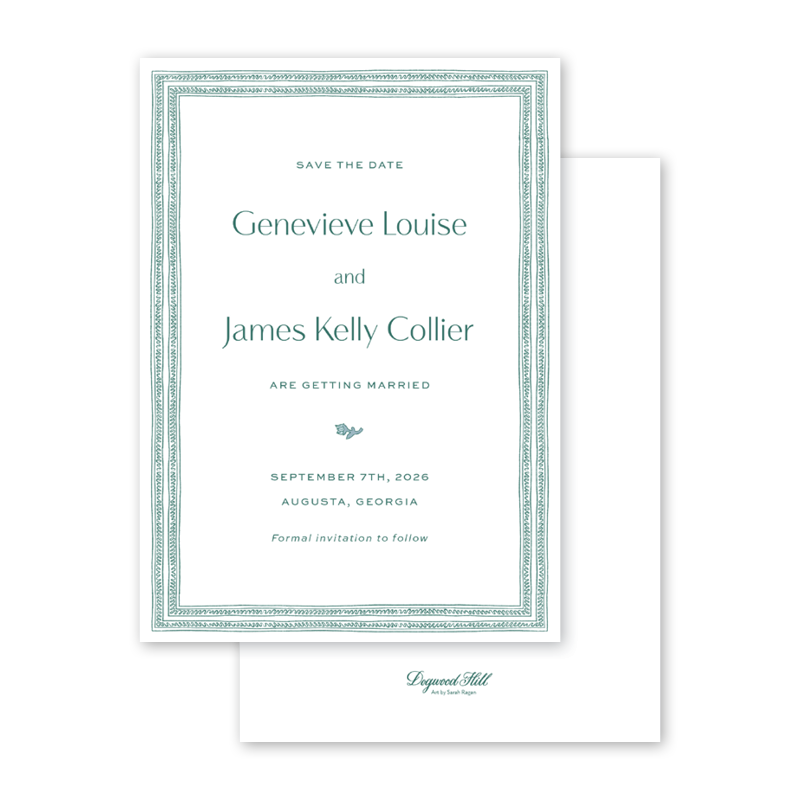If your Save the Date includes a photo, please email a high resolution image along with your order number to weddings@dogwood-hill.com.