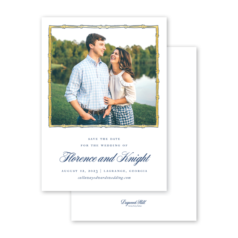 Select your order quantity from the dropdown menu below and check your total. Enter the text for your Save the Date in the “Note” box below. Click Add to Cart. Your wording does not have to match the sample product wording and can be customized for your Save the Date. You will receive a proof notification via email and text message within 3 to 5 business days.If your Save the Date includes a photo, please email a high resolution image along with your order number to weddings@dogwood-hill.com.