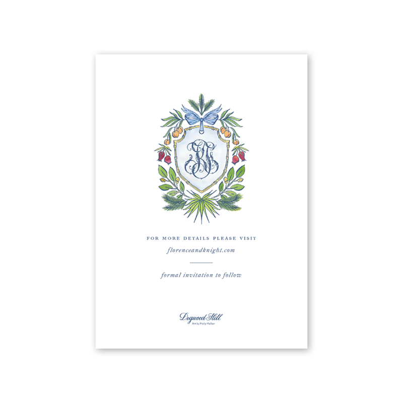 Select your order quantity from the dropdown menu below and check your total. Enter the text for your Save the Date in the “Note” box below. Click Add to Cart. Your wording does not have to match the sample product wording and can be customized for your Save the Date. You will receive a proof notification via email and text message within 3 to 5 business days.If your Save the Date includes a photo, please email a high resolution image along with your order number to weddings@dogwood-hill.com.