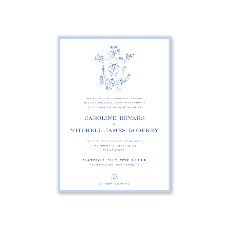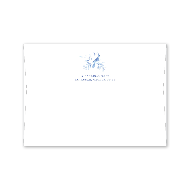 Each invitation comes with a blank inner and outer envelope and return address printing on the outer envelope flap. Envelope liner and recipient address printing for each envelope may be purchased for an additional cost on the main collection page.
