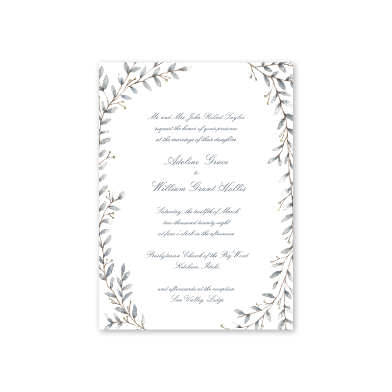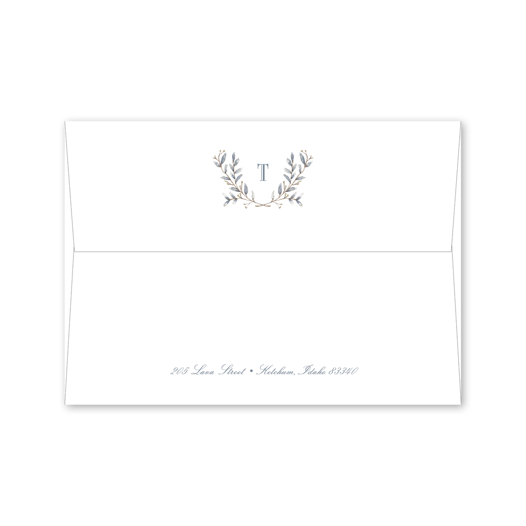 Each invitation comes with a blank inner and outer envelope and return address printing on the outer envelope flap. Envelope liner and recipient address printing for each envelope may be purchased for an additional cost on the main collection page.