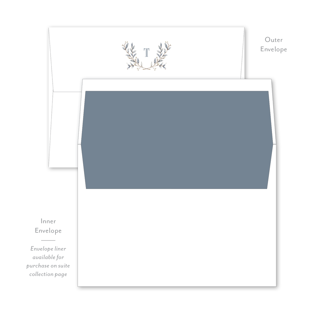 Each invitation comes with an inner and outer envelope and return address printing on the outer envelope flap. Envelope liner may be purchased for an additional cost on the main collection page.