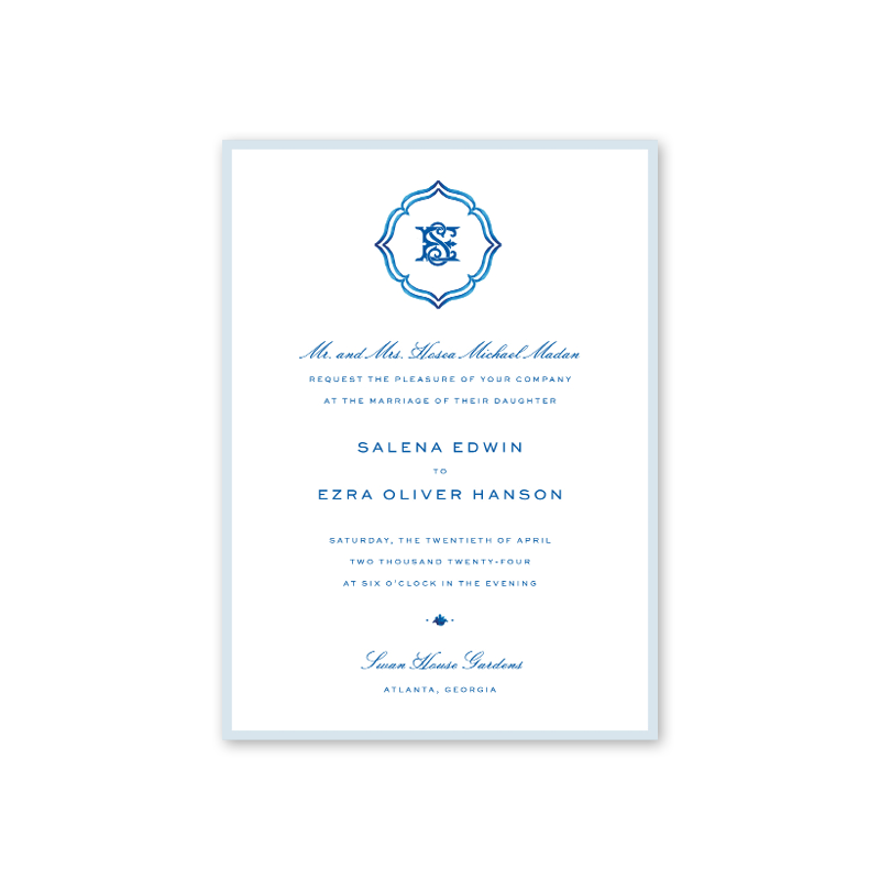 Each invitation comes with a blank inner and outer envelope and return address printing on the outer envelope flap. Envelope liner and recipient address printing for each envelope may be purchased for an additional cost on the main collection page.