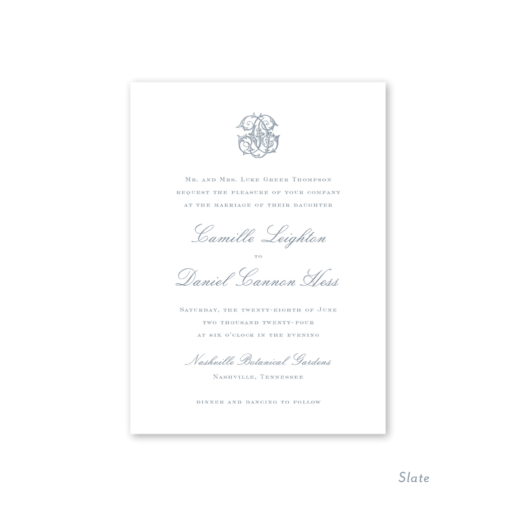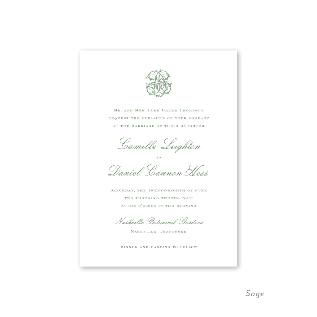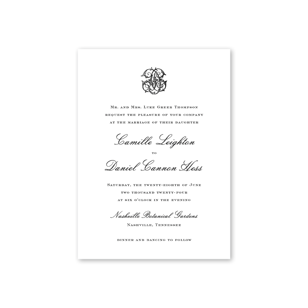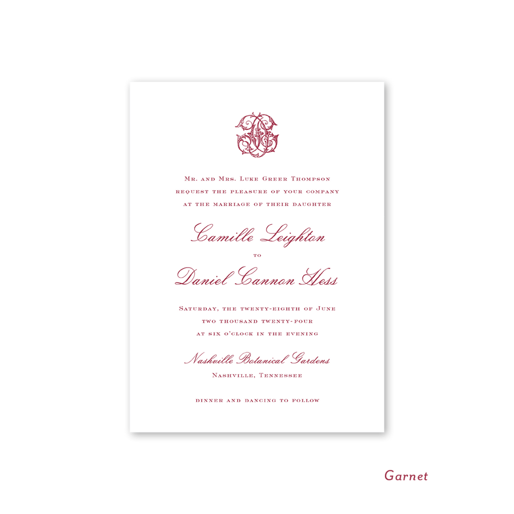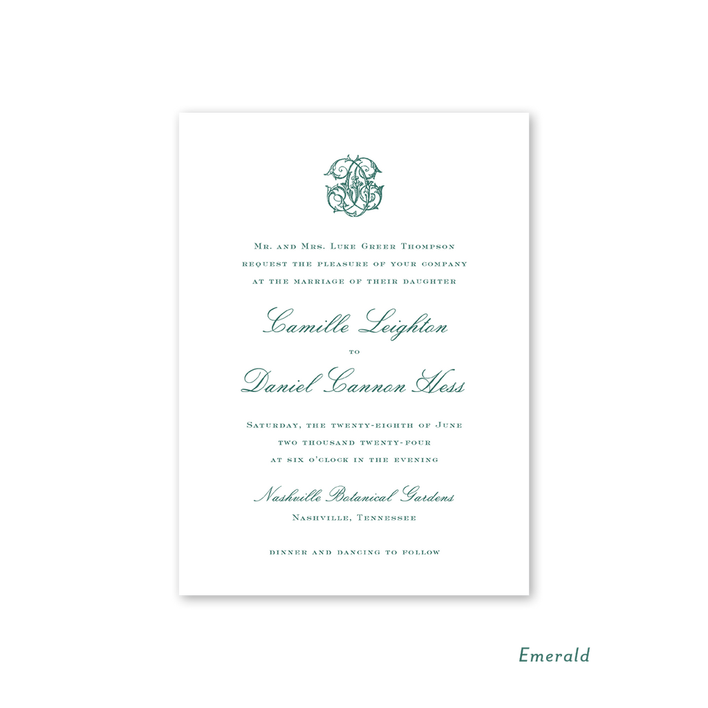 Each invitation comes with a blank inner and outer envelope and return address printing on the outer envelope flap. Envelope liner and recipient address printing for each envelope may be purchased for an additional cost on the main collection page.
