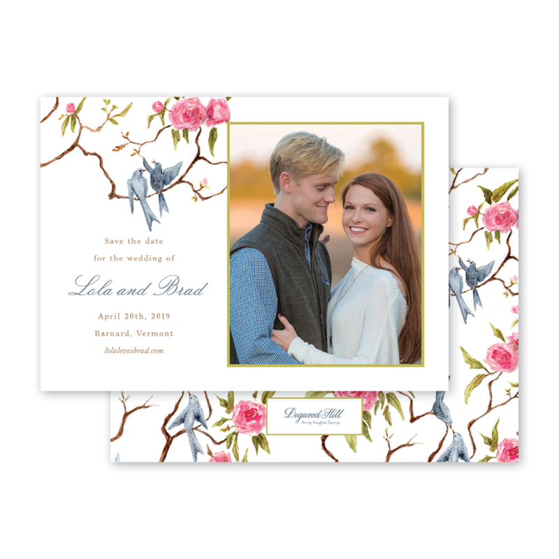 If your Save the Date includes a photo, please email a high resolution image along with your order number to weddings@dogwood-hill.com.