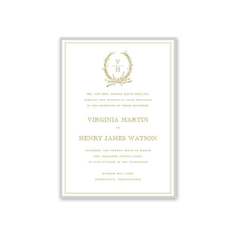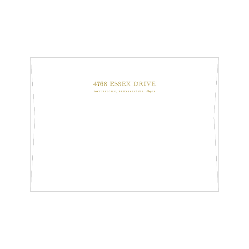 Each invitation comes with a blank inner and outer envelope and return address printing on the outer envelope flap. Envelope liner and recipient address printing for each envelope may be purchased for an additional cost on the main collection page.