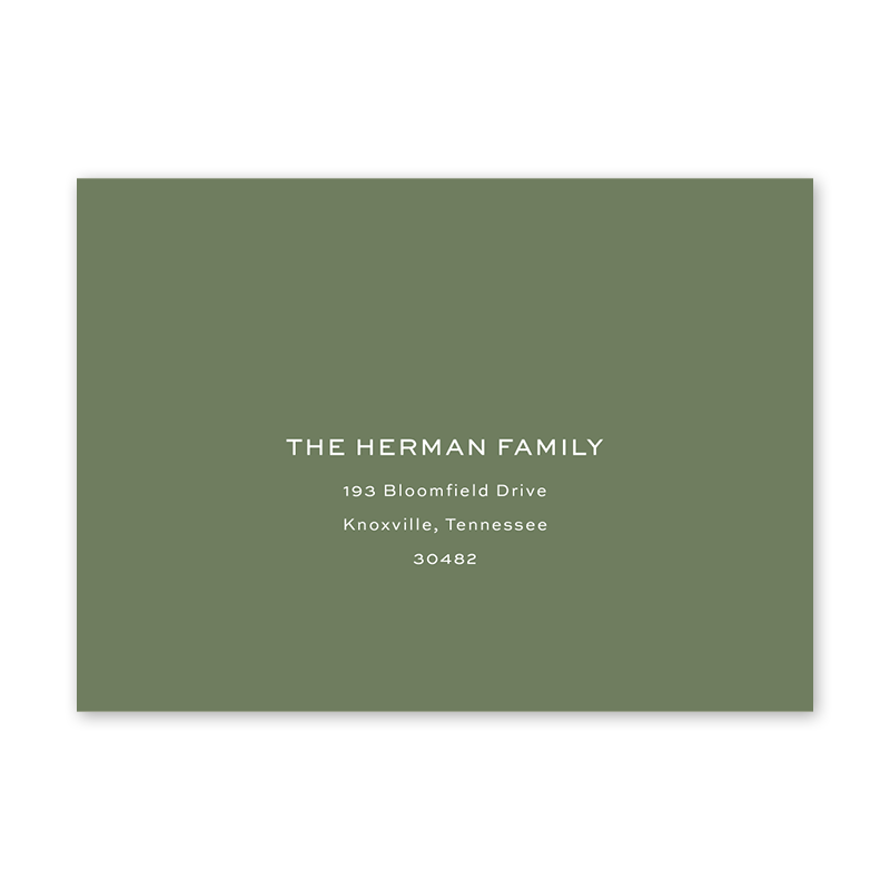 Enter your order quantity and check your total. Please enter your address EXACTLY like you want it printed on your envelope in the "Note" box below. Click Add to Cart. You will not receive a proof during the holidays (September 15 – December 31), unless your accompanying card requires a proof. If you do not include your address in the "Note" box or email it to Customer Service within 24 hours of placing your order, we will use your shipping address as the printed return address on your envelope.  |  /