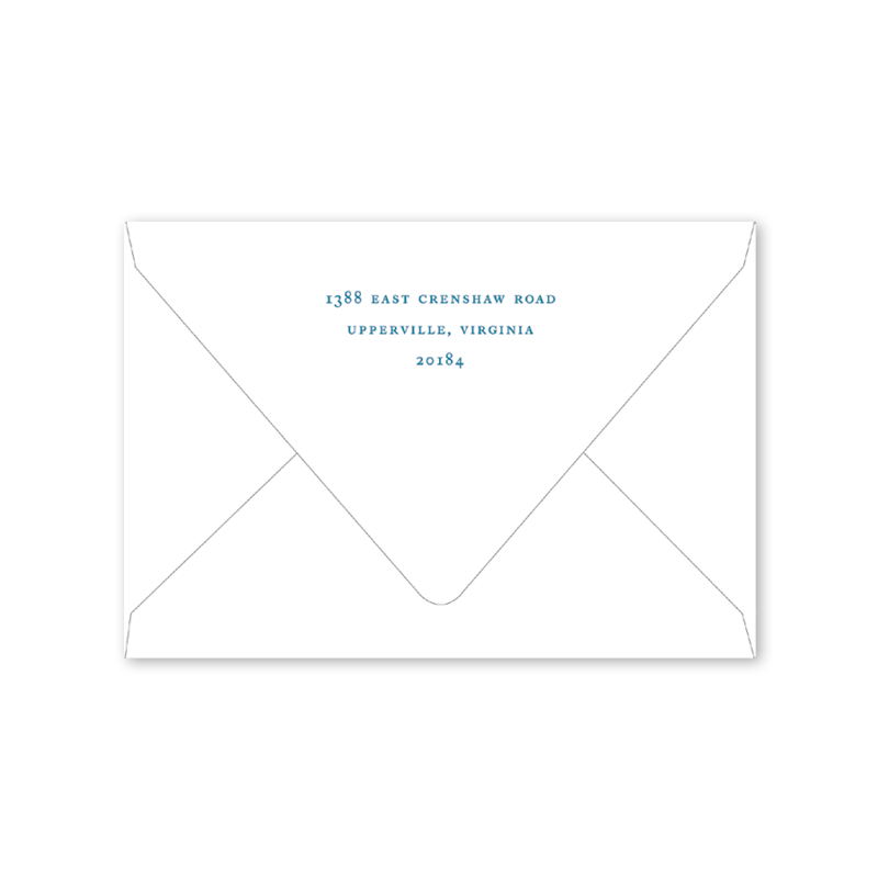 Enter your order quantity and check your total. Please enter your address EXACTLY like you want it printed on your envelope in the "Note" box below. Click Add to Cart. You will not receive a proof during the holidays (September 15 – December 31), unless your accompanying card requires a proof. If you do not include your address in the "Note" box or email it to Customer Service within 24 hours of placing your order, we will use your shipping address as the printed return address on your envelope.