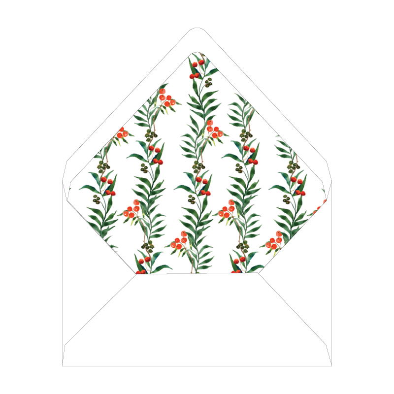 Winterberry Garland Monogram Folded Notecard Liner