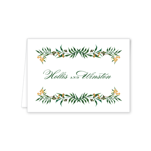 Winterberry Gold Trim Folded Notecard Green Liner