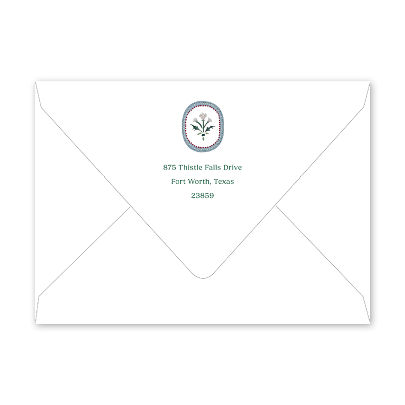 Enter your order quantity and check your total. Please enter your address EXACTLY like you want it printed on your envelope in the "Note" box below. Click Add to Cart. You will not receive a proof during the holidays (September 15 – December 31), unless your accompanying card requires a proof. If you do not include your address in the "Note" box or email it to Customer Service within 24 hours of placing your order, we will use your shipping address as the printed return address on your envelope.