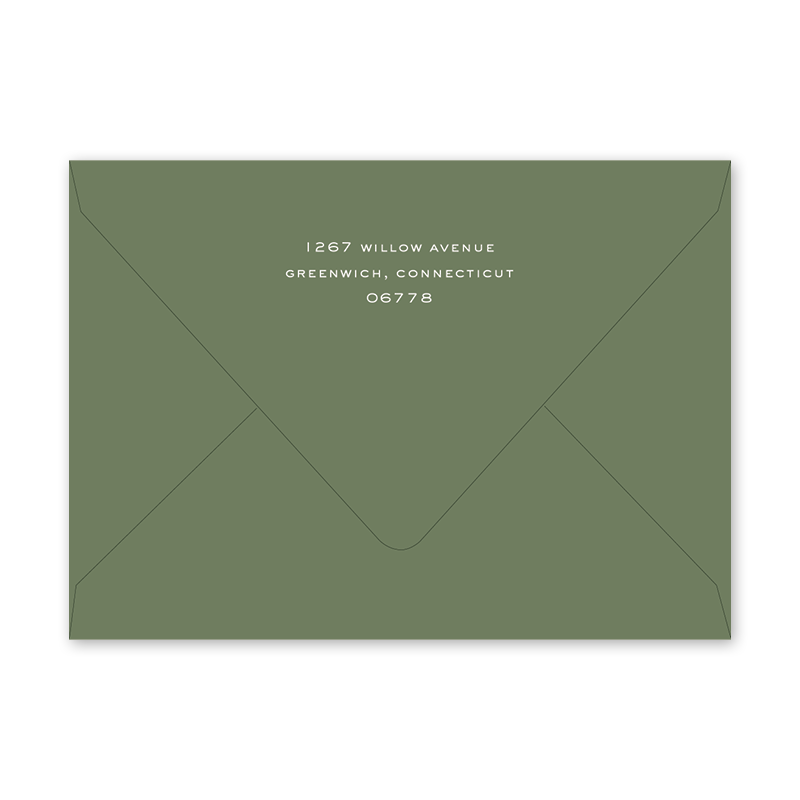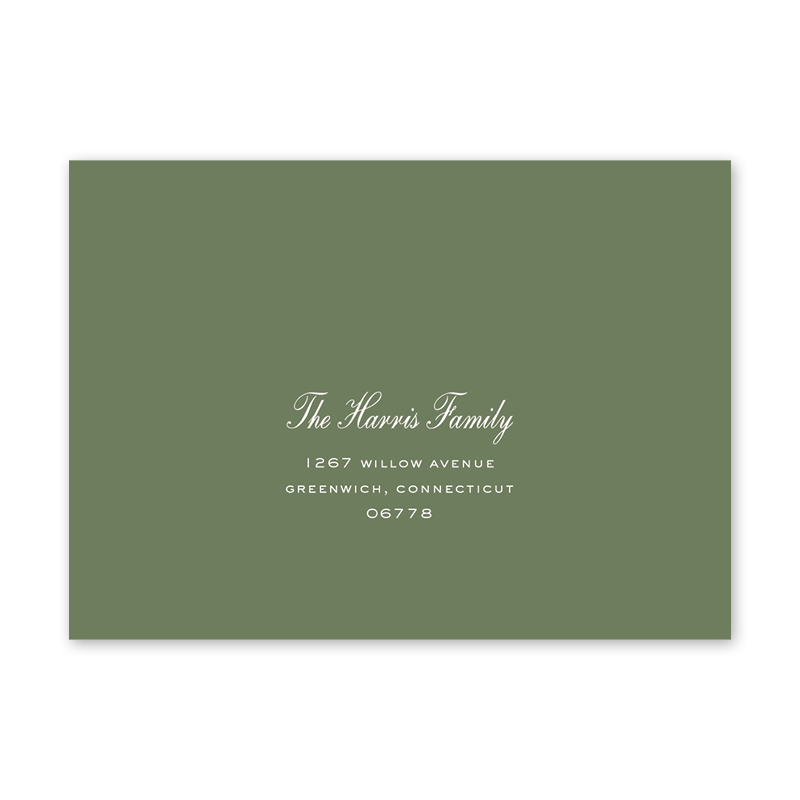 Enter your order quantity and check your total. Please enter your address EXACTLY like you want it printed on your envelope in the "Note" box below. Click Add to Cart. You will not receive a proof during the holidays (September 15 – December 31), unless your accompanying card requires a proof. If you do not include your address in the "Note" box or email it to Customer Service within 24 hours of placing your order, we will use your shipping address as the printed return address on your envelope. Enter your order quantity and check your total. Then click the Customize and Add to Cart button to enter your address and add the envelope to your cart. | /