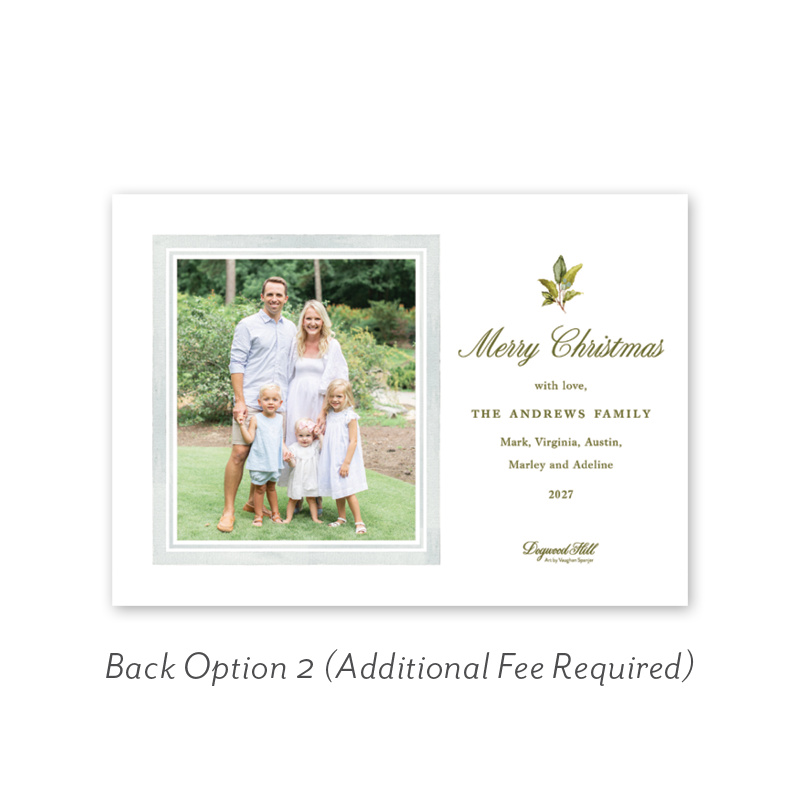 Select your order quantity from the dropdown menu below and check your total. Then click the Customize and Add to Cart button to create your card and add it to your cart.Want to add up to 4 photos on the back or inside of your card? Click here to add the fee to your cart.