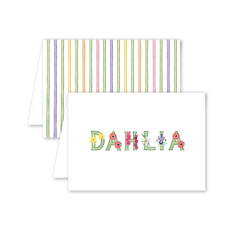 25 personalized notecards sized 3.5 x 4.875 inches folded on 120 lb Mohawk Eggshell White Paper
