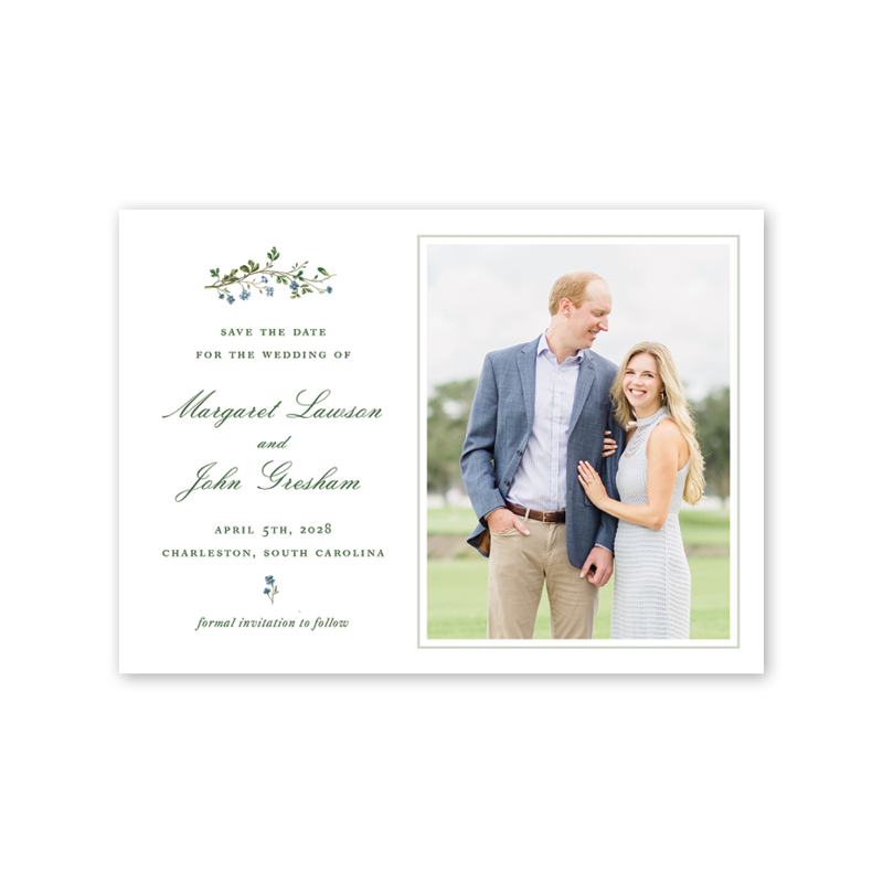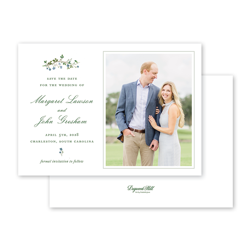 Select your order quantity from the dropdown menu below and check your total. Enter the text for your Save the Date in the “Note” box below. Click Add to Cart. Your wording does not have to match the sample product wording and can be customized for your Save the Date. You will receive a proof notification via email and text message within 3 to 5 business days.If your Save the Date includes a photo, please email a high resolution image along with your order number to weddings@dogwood-hill.com.
