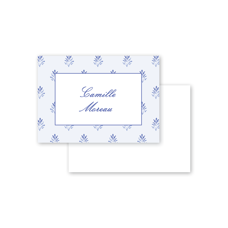 25 personalized calling cards sized 2.75 x 2.75 inches flat on 120 lb Mohawk Eggshell White Paper