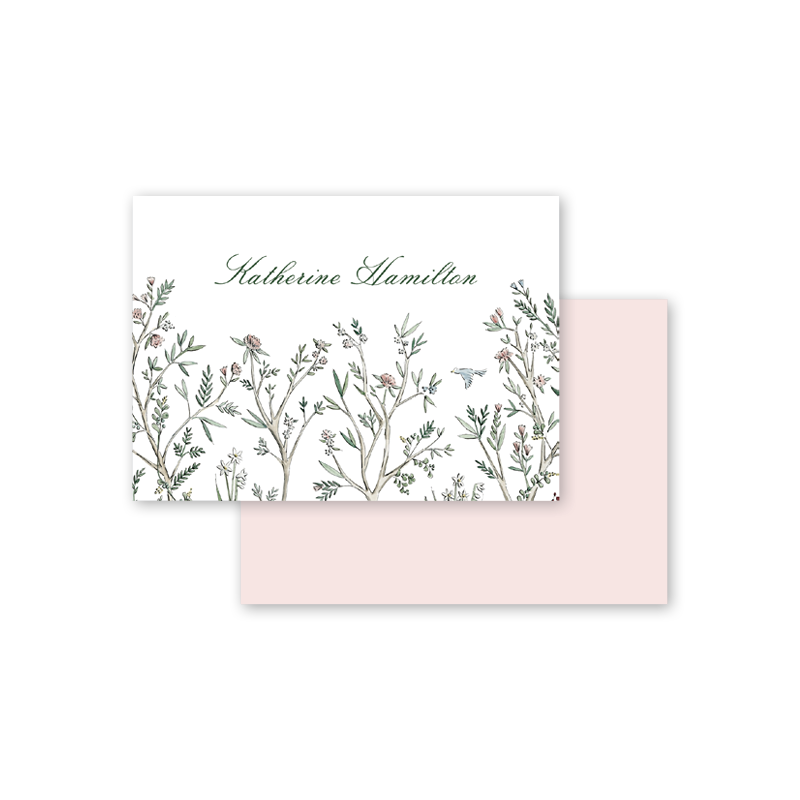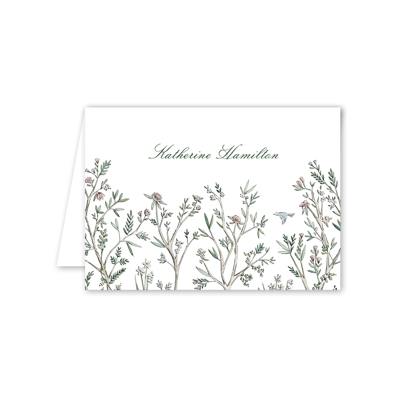 25 personalized notecards sized 3.5 x 4.875 inches folded on 120 lb Mohawk Eggshell White Paper
