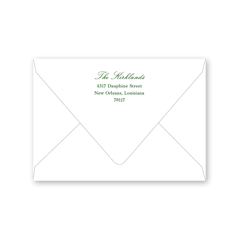 Enter your order quantity and check your total. Please enter your address EXACTLY like you want it printed on your envelope in the "Note" box below. Click Add to Cart. You will not receive a proof during the holidays (September 15 – December 31), unless your accompanying card requires a proof. If you do not include your address in the "Note" box or email it to Customer Service within 24 hours of placing your order, we will use your shipping address as the printed return address on your envelope.