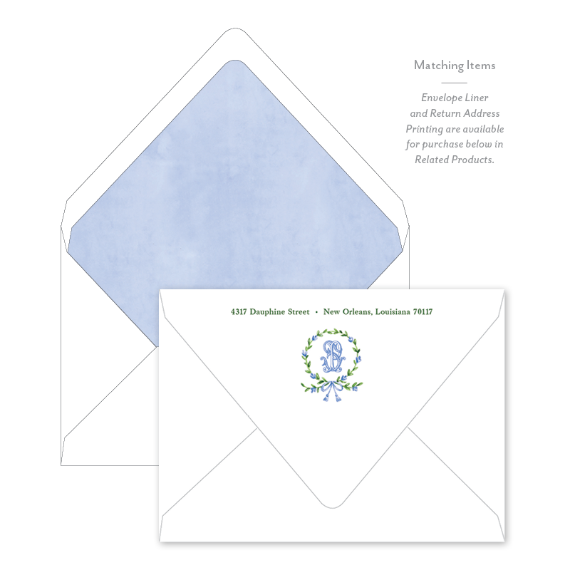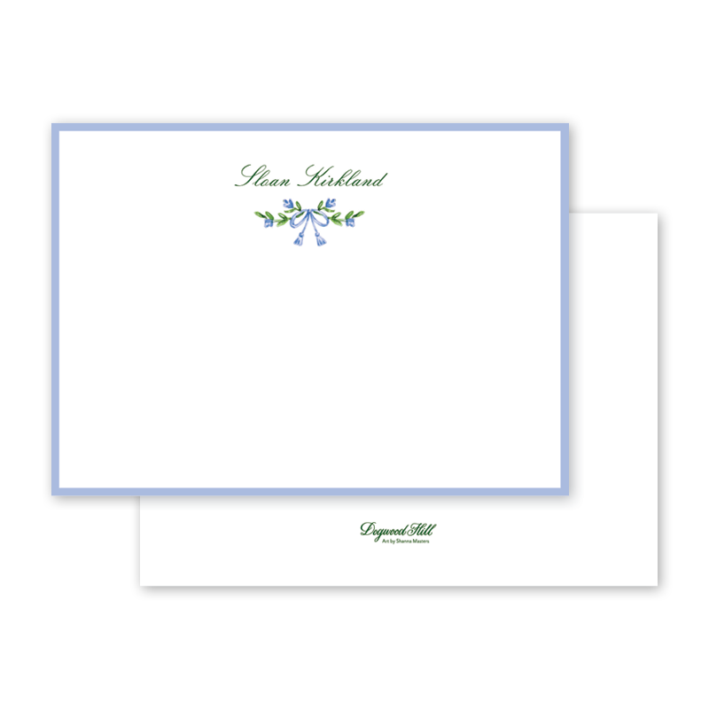 Select your order quantity from the dropbox menu below and check your total. Enter the personalization text for your notecard in the “Note” box below. Click Add to Cart. You will receive a proof notification via email and text message within 3 to 5 business days.Each card comes with one free BLANK Eggshell White envelope.