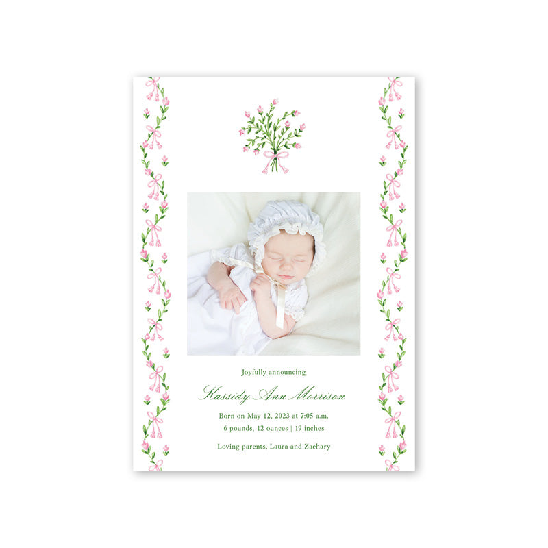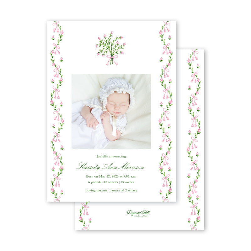 Broderie Pink Birth Announcement