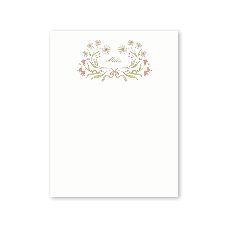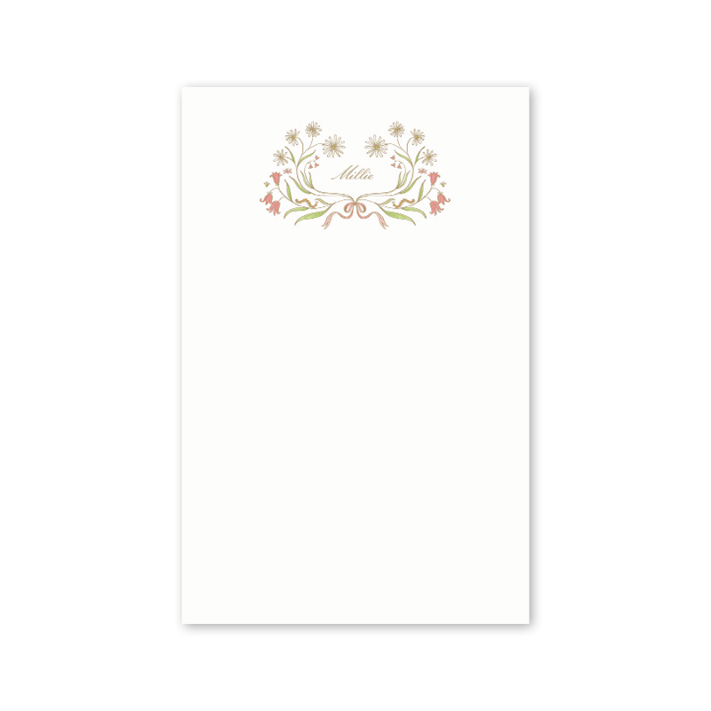 100 sheet personalized notepad sized 4.25 x 5.5 inches on 80 lb paper
