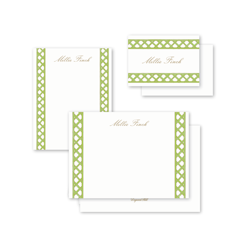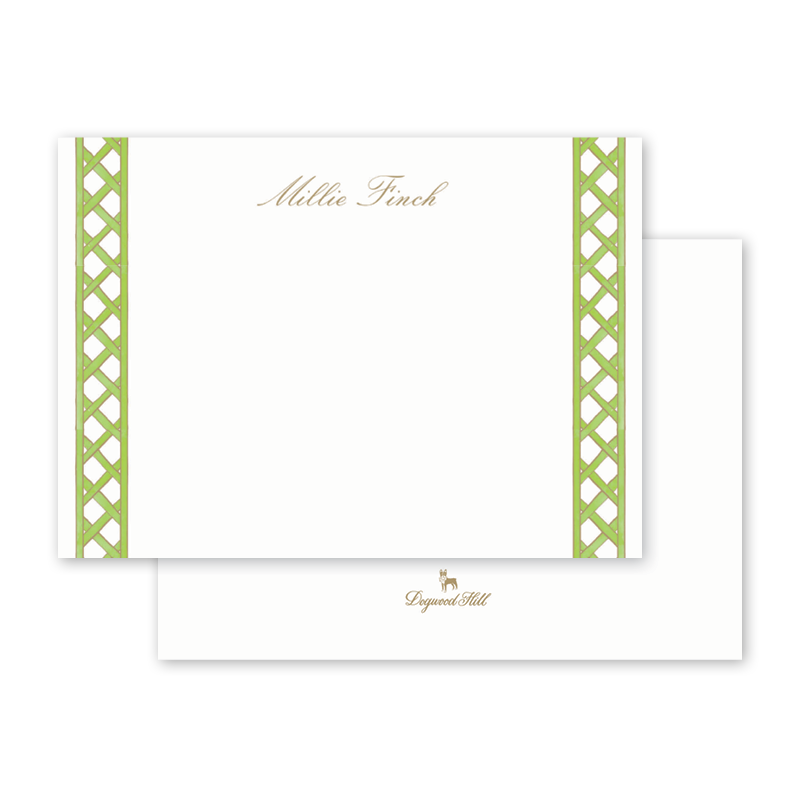 25 personalized notecards sized 4.5 x 6.25 inches on 120 lb Mohawk Eggshell White Paper