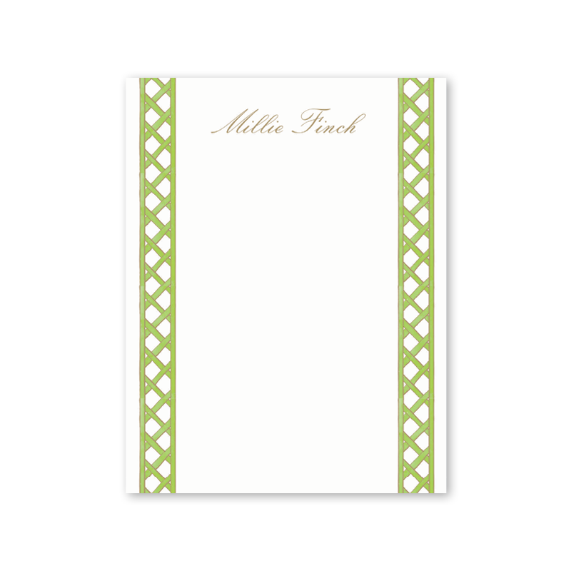 100 sheet personalized notepad sized 4.25 x 5.5 inches on 80 lb paper