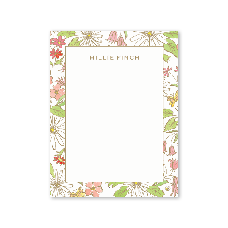100 sheet personalized notepad sized 4.25 x 5.5 inches on 80 lb paper