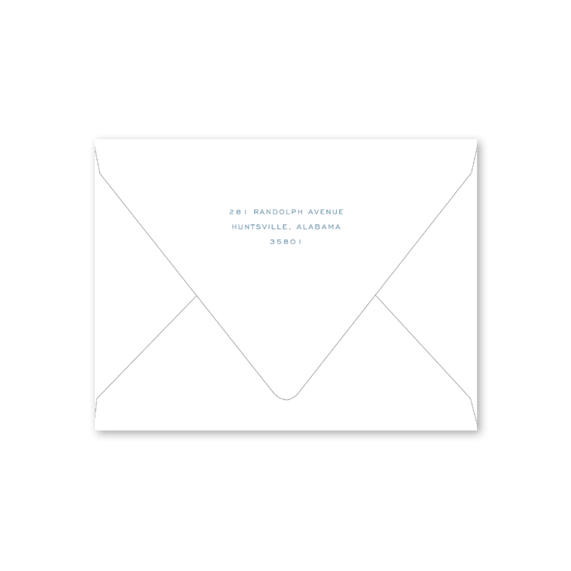 Enter your order quantity and check your total. Please enter your address EXACTLY like you want it printed on your envelope in the "Note" box below. Click Add to Cart. You will not receive a proof during the holidays (September 15 – December 31), unless your accompanying card requires a proof. If you do not include your address in the "Note" box or email it to Customer Service within 24 hours of placing your order, we will use your shipping address as the printed return address on your envelope.
