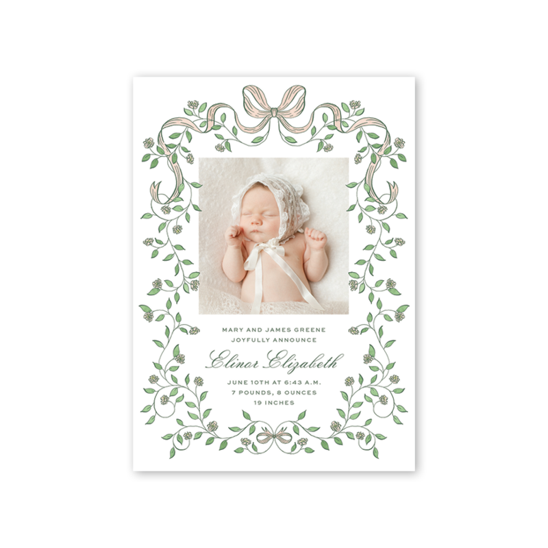 Bunny's Garden Rose Vine Pink Birth Announcement