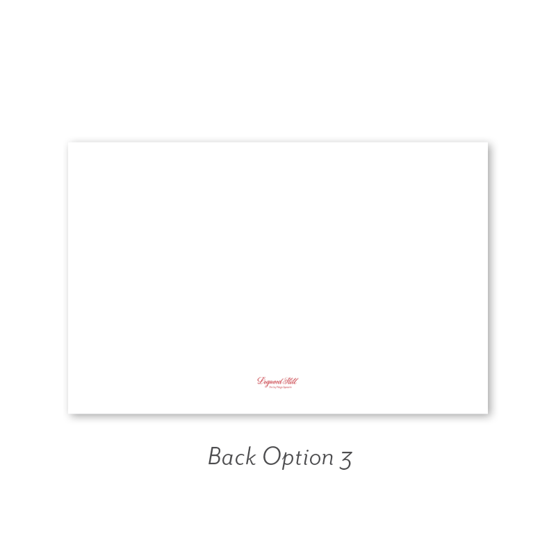 Select your order quantity from the dropdown menu below and check your total. Then click the Customize and Add to Cart button to create your card and add it to your cart.Want to add up to 4 photos on the back or inside of your card? Click here to add the fee to your cart.